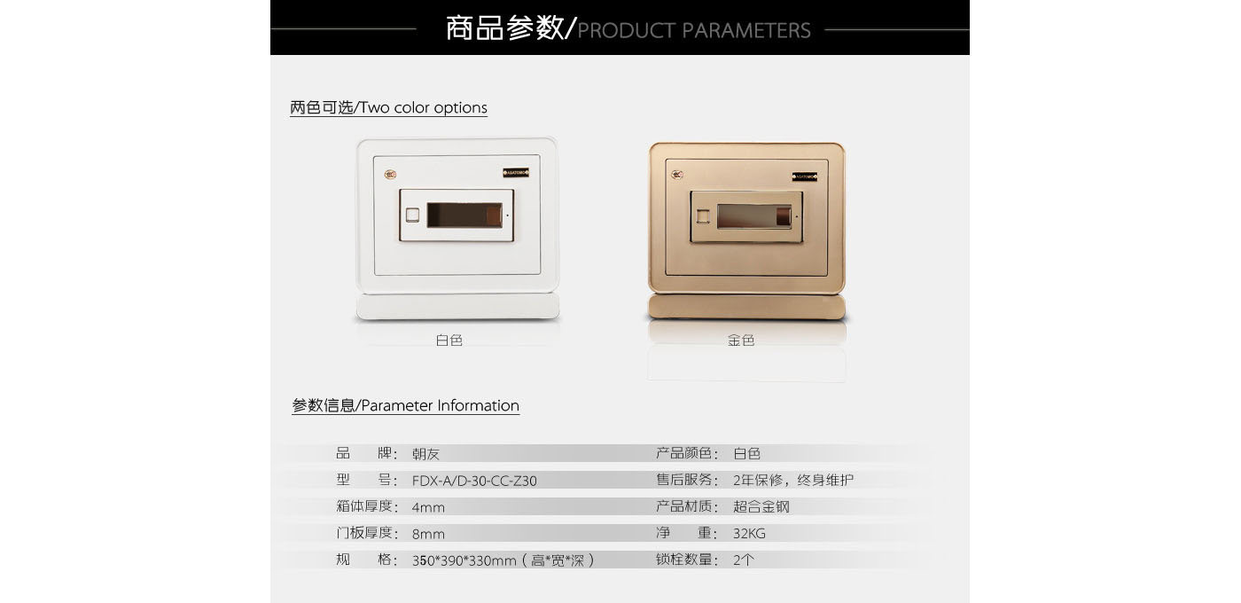 永發旗下朝友CZ30金慧指紋式3C保險柜尺寸說明:350高*390寬*330深mm(含底座) 重量:32kg